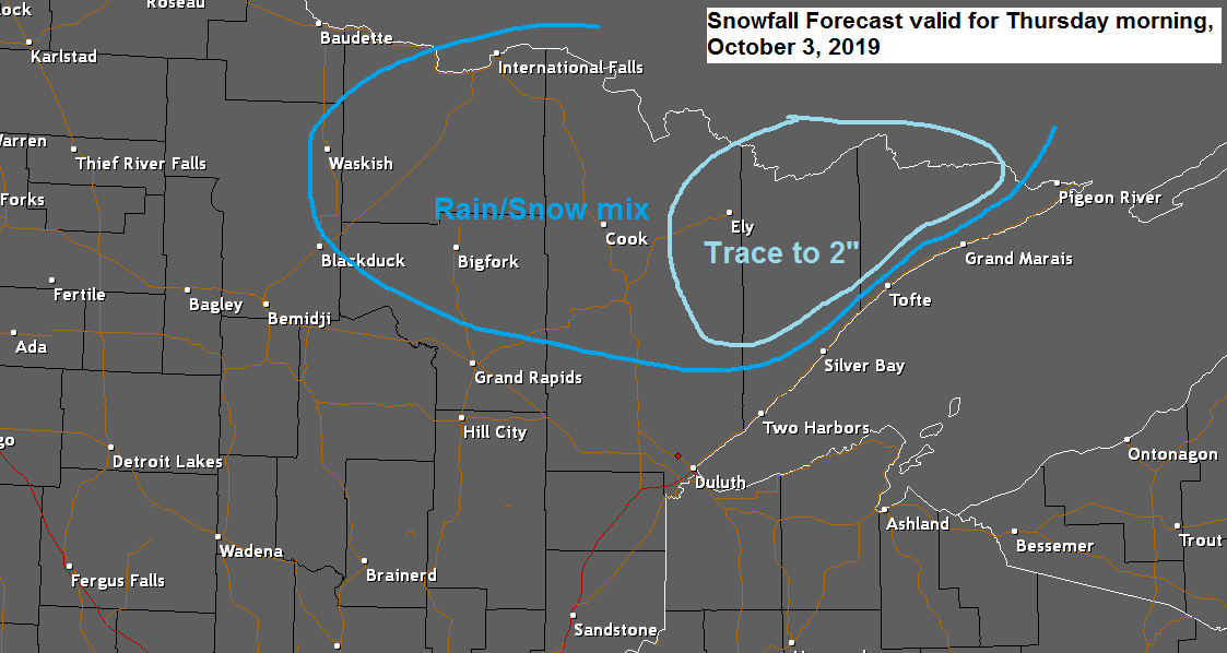 Colder air moving into far northern Minnesota Thursday morning should cause the rain to mix with snow, and in some locations the mixed precipitation could change to all snow. Temps aloft are forecast to range from -1 to -3C at 850mb, and around -1C at 925mb, both of which are cold enough for frozen precipitation, but in the end it will depend on how much of that cold air mixes down to the surface as to whether or not will get the rain to mix with or change to snow Thursday morning.