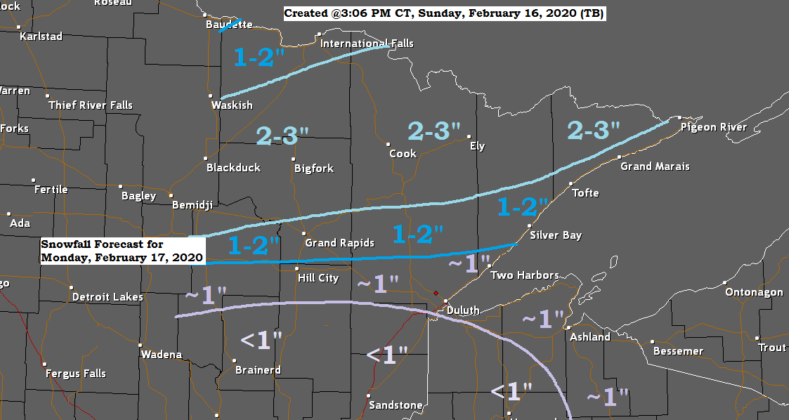 *1 to 2 inches of snow for International Falls, Grand Rapids and Silver Bay.