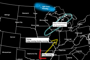Note: A much stronger system (heavy snow) is possible this weekend, but this one should remain well to the SE of the Northland with no snow expected in our area, but an exception to this may be near Lake Superior especially along the South Shore (east of Duluth) where some lake effect snow could develop from late Friday into Saturday as NE winds blow down the lake, but the air mass doesn’t look particularly cold, with 850mb temps ranging from -5 to -8C per model guidance, so if any lake effect snow develops Friday or Saturday it doesn’t look like it would amount to much.