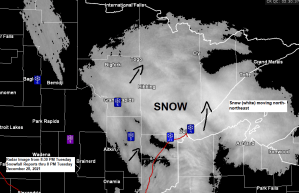 Snow continues to fall in much of northeast Minnesota and northwest Wisconsin as of 8:30 PM this evening but the snow will be ending from SW-NE through the overnight.