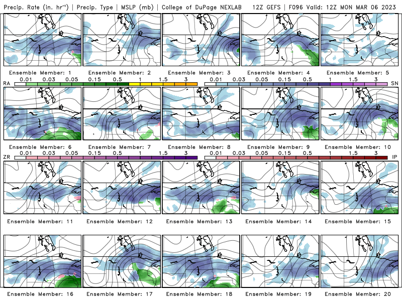Here’s the GEFS model precipitation type forecast valid for 7 AM Monday, March 6, 2023.