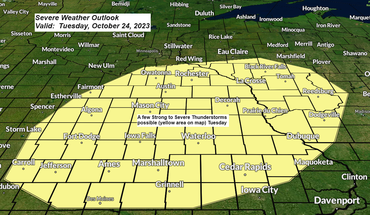 Looks mainly dry in our area during the day on Sunday, but some more rain showers are likely Sunday night, and these showers could then continue at times in parts of the Northland Monday and Tuesday as a cold front approaches from the northwest while low pressure moves northeast out of the Central Plains. Note — There is even a chance that we could see a few isolated thunderstorms late Monday night into Tuesday mainly over northwest Wisconsin as elevated CAPE increases, and this combined with steep mid-level lapse rates could help generate some late season thunderstorms in parts of the Northland, but severe weather is not expected in our area on Tuesday, however, there is a risk for a few strong to severe thunderstorms in parts of southern Minnesota, northern/central Iowa, and southwest Wisconsin Tuesday.