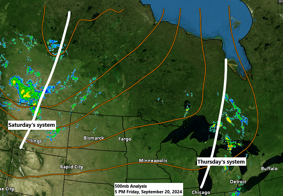 A swift-moving weather system is expected to travel eastward from the northern Plains, crossing the upper Midwest on Saturday. This system may lead to isolated to scattered showers in parts of northeast and east-central Minnesota, as well as northwest Wisconsin, but a widespread rain event is not anticipated.