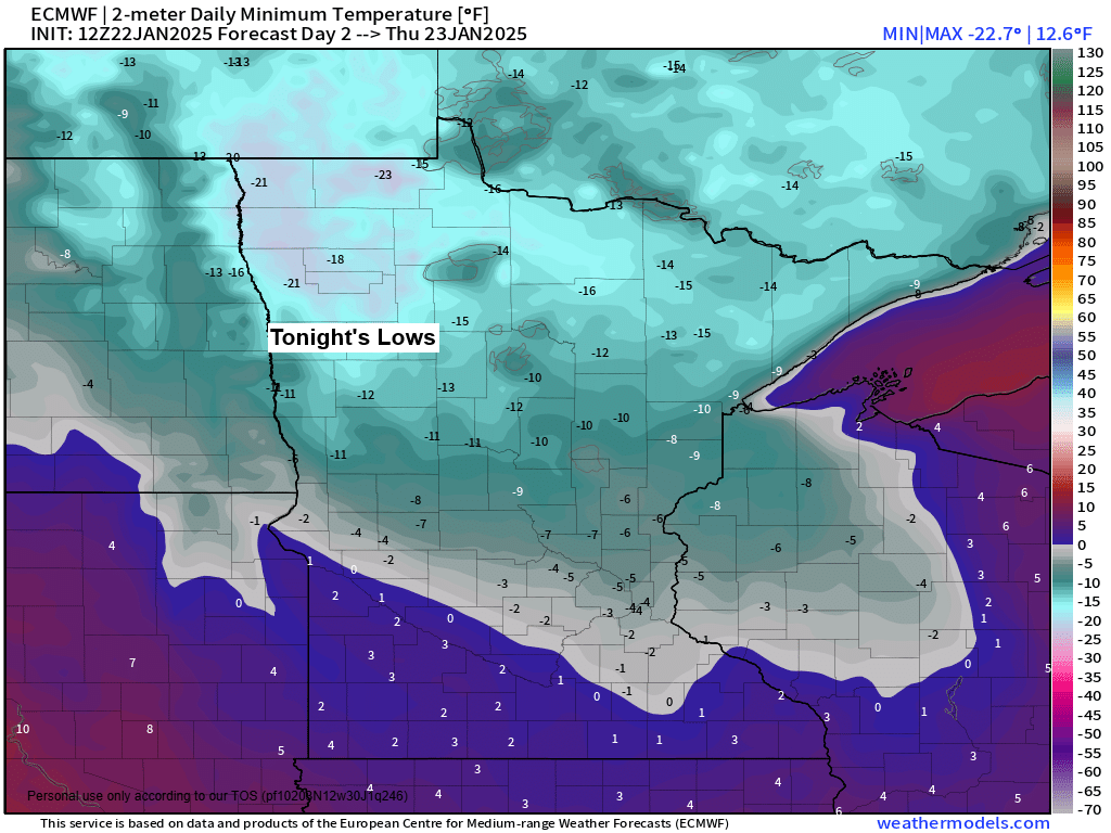 Note: The average temperature in Duluth from January 18-21, 2025, was -11.5 degrees, which was -22.0 degrees below normal.
