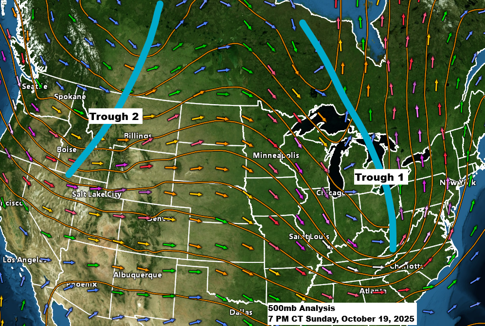 One trough has moved east of the Northland this afternoon, but right behind it comes another trough, which will deepen and take on a negative tilt as it moves southeast from the northern Rockies into the upper Midwest on Monday. This trough will then linger over the Great Lakes through Tuesday and Wednesday.
