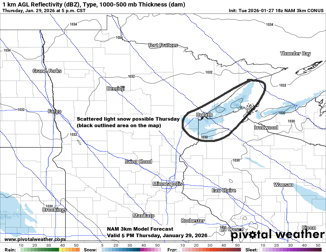 Note: Model guidance hints at an active clipper pattern returning in early February, which could bring more frequent chances for snow in the Northland, though these are likely to be just light snowfall events.