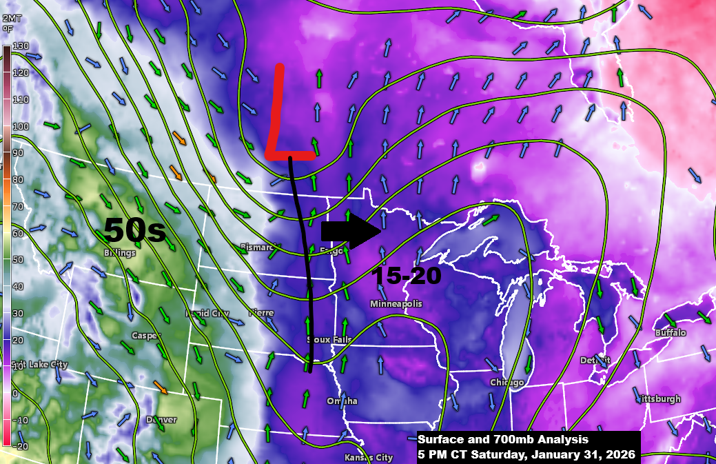 This snow will be driven by a clipper low that passes north of Minnesota on Sunday while a shot of warm air advection occurs ahead of this system, which will be the main culprit in producing our snow later tonight and on Sunday.
