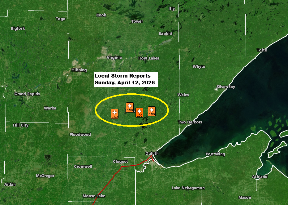 • 6:16 PM – Hail 0.50 inch. 3 N Shaw, MN (St. Louis County)